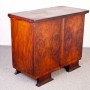 Bufé malé - model art deco bez nástavby. Dýhovaná laťovka ořechovou dýhou včetně vnitřní desky. Jedná se o velmi kvalitní model. Výrazně tvarované nohy v kontrastu se strohostí samotného těla bufé tvoří zajímavý kus. Zámek je kompletní i s klíčem. Celistvost modelu jistě dotvoří vhodný výběr dobových úchytek - skladem na ateliérech firmy. Svou prostorovou nenáročností je možno tento solitér umístit i do menších interiérů.
