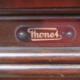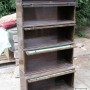 Jedná se o model knihovny tzv. Americké, celodřevěný masív v mořeném buku. Kompletní, čtyřdveřová, signována štítkem a i tlačená značka. Nerestaurována, mírně poškozena. Tzv.bytový stav.