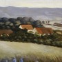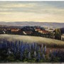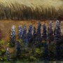 Líbivé vyobrazení moravské vesnice s výraznými modrými květy v popředí. Signováno vpravo dole, nerestaurováno. Kvalitní malba. Původní rám.