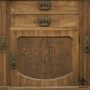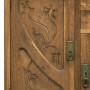 Jde o originální kus secesního sekretáře v tzv. nálezovém stavu. Sekretář se skládá ze dvou dílů a to spodní díl se šuplíky a mramorovou deskou a dvoudveřový horní díl - částí - samostatnou a to prosklenou se zabrušovanou fazetou. Sekretář je poškozen stářím a částečně vlhkem - viz fotodokumentace. Provedení co se týká dřeva je kombinace masív ořech - řezbovaný reliéf a dýha ořechová. Mramor je prasklý, ale původní a kompletní označen papírovým štítkem - viz fotodokumentace. Kování je rovněž původní - sesesní a v provedení tlačená mosaz. Zámky kompletní ale bez klíčů – nutno dořešit. Na horním dílu na horní části byla zdobná secesní ohrádka, která již chybí, ale zůstaly po ní díry na čepy pro nasazení - opět viz fotodokumentace horní plochy sekretáře. V případě zájmu zajistíme kompletní odborné restaurování a to včetně výroby chybějící nádstavby - ohrádky na horním dílu nádstavby. Pro lepší model by nebylo špatné osadit sekretář růžovým mramorem, typickým pro tuto dobu a hlavně kombinaci s ořechovým dřevem. Současně zajistíme písemný rozpočet všech odborných prací jak restaurátora truhláře, tak pasíře na kování, tak i zámečníka na zámky a kolíče, tak i kameníka na mramor ať stávající a nebo nový. Tento secesní model sekretáři i přes svůj momentální špatný technický stav si zaslouží odborný restaurátorský zásah. Sekretář je možno vidět ve skladech naší firmy, ale pouze po předchozí domluvě emailem a nebo telefonicky. Další popis viz fotodokumentace. V případě dalšího zájmu je možno zaslat z archívu formy více fotozáběrů od tohoto poměrně kvalitního modelu. K výšce sekretáře - 202 cm se v případě výroby chybějící ohrádky musí připočítat cca 15 cm.